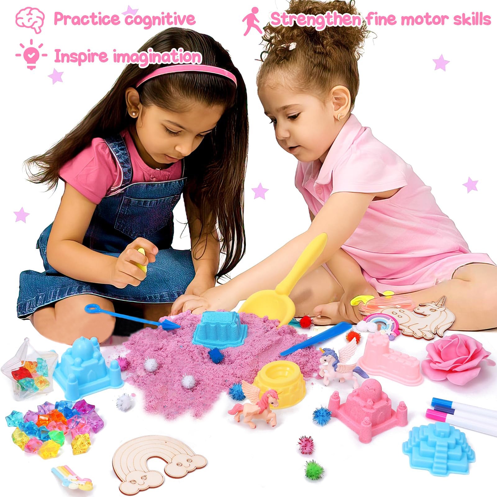 Creative Sand Toys: Not only a sensory bins for toddlers 3-4, but also ideal girls' toys, Christmas and birthday gifts for girls, toddler girl gifts, arts and crafts for kids ages 6-8. Our sensory bins or colored sand encourage tactile and visual engagement, also stimulate fine motor skills, hand-eye coordination, aesthetic and imagination.