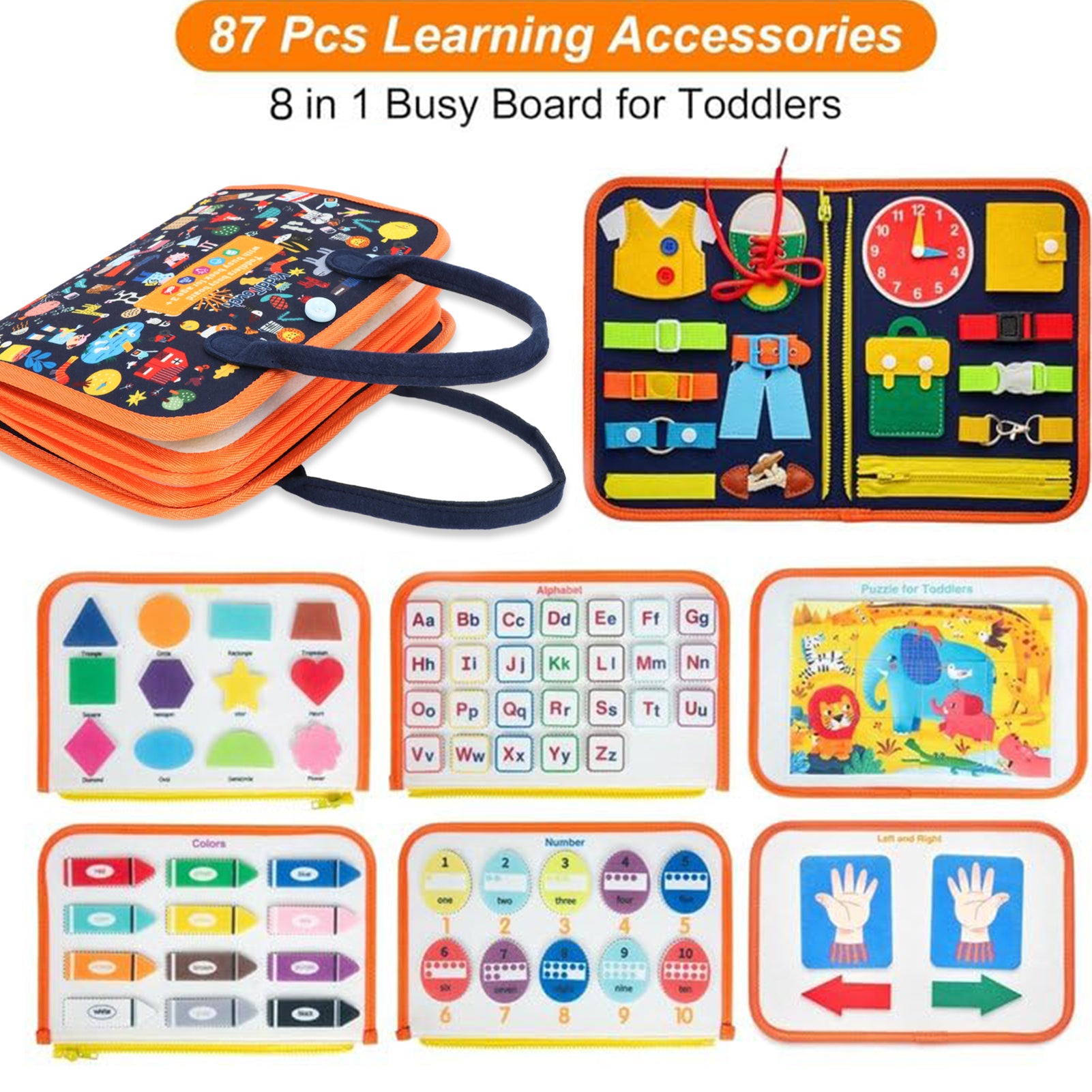 Learn Through Playing :KiddiTouch busy book is an excellent preschool learning toy for children, which can keep them entertained while they learning math,animals, spelling and dressing.The detachable zipper design helps for several children to play together.