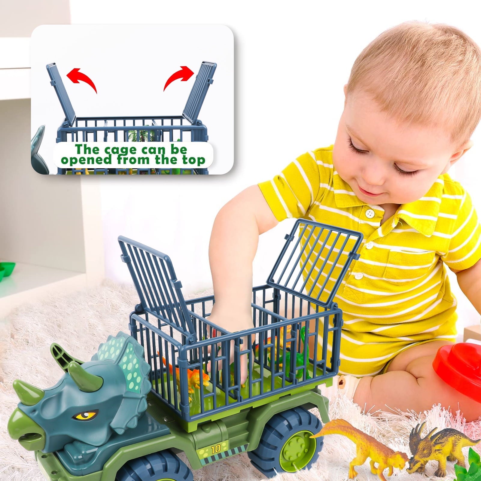 KiddiTouch Dinosaur Toy for Kids 3-5 5-7, Dinosaur Truck Carrier Car, Monster Truck with Dinosaur Toys for Boys, Dino Transport Cars Playset Gift for Boys