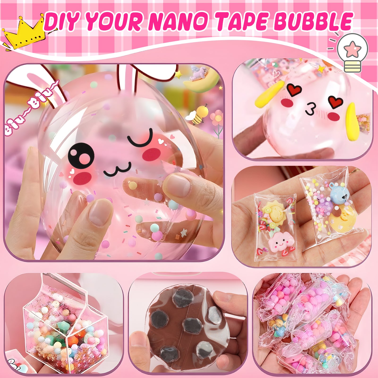KiddiTouch Nano Tape Bubble Kit for Kids with Box, 6 Pcs Nano Tapes Squishy Maker Making Kits, Step by Step Guide -DIY Toy Gifts for Boys Girls