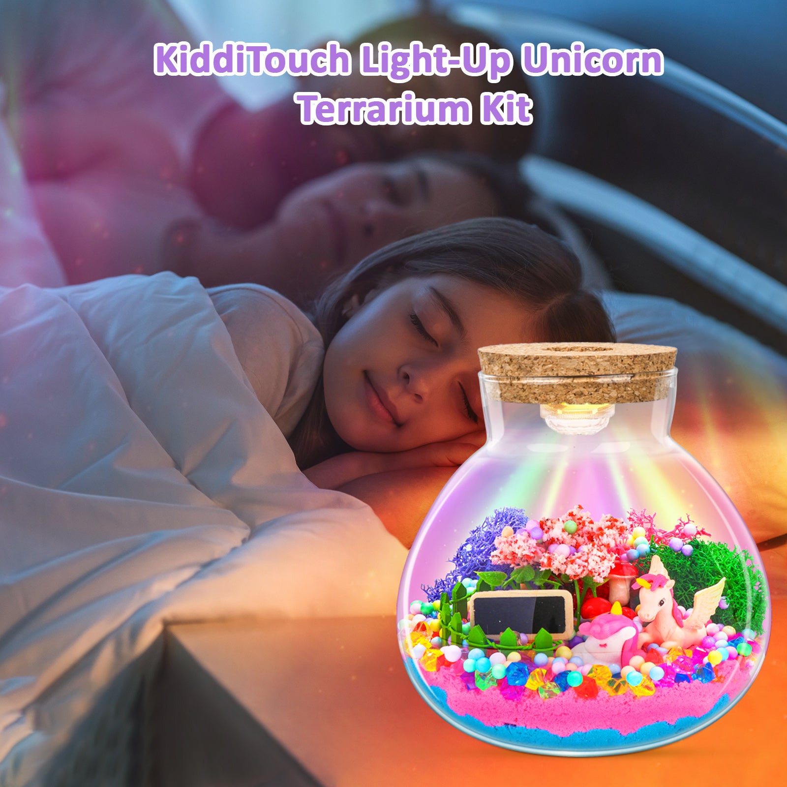 KiddiTouch Terrarium Kit for Kids, Light-Up Birthday Gifts Unicorns Toys for Girls Arts and Crafts for Kids Ages 6-12 Pink